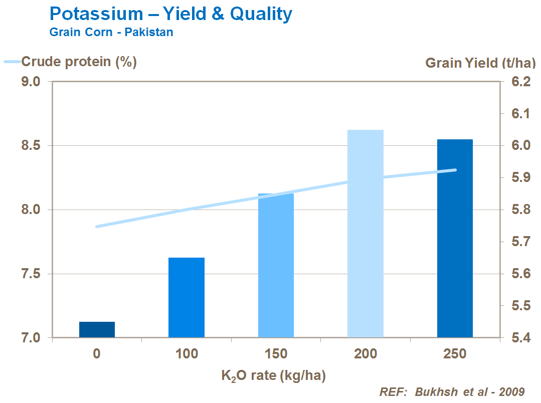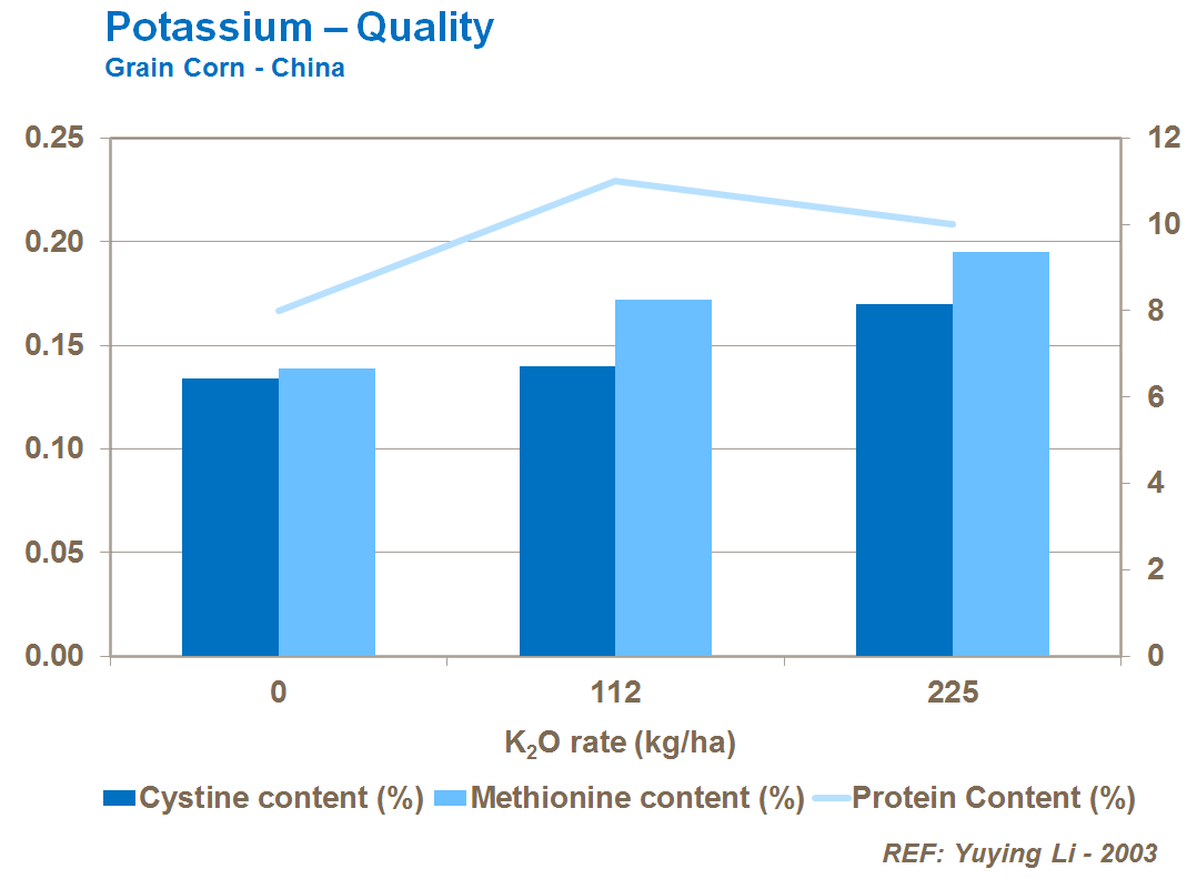 Good potassium nutrition can increase protein content of the grain and the levels of proteinogenic amino acids, cystine and methionine.