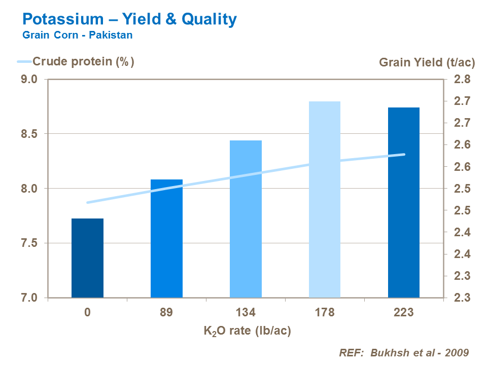 Good potassium nutrition can increase protein content of the grain and the levels of proteinogenic amino acids, cystine and methionine.