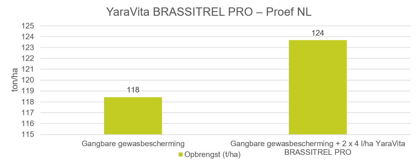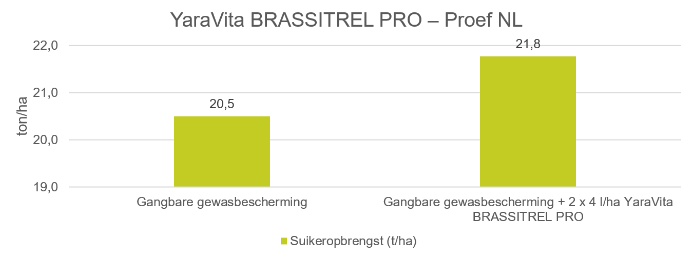 De volgende proefresultaten laten duidelijk een hogere opbrengst en suikeropbrengst zien na toepassing van YaraVita BRASSITREL PRO.